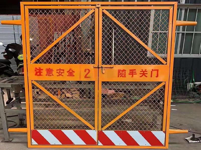 2.門面優點:門面采用小孔鋼板網或電焊網片與鋼板組合構成。一方面可以防止等候人員伸手開門,又便于人貨電梯操作人員觀察樓內情況,利于樓內外雙方工作人員溝通交流。高強冷軋鋼板同時也是小型汽車普遍采用的材料,可以抗擊300kg以上的沖擊力。并且噴涂警示語和擋腳警示線,對工地文明施工形象顯著提升。