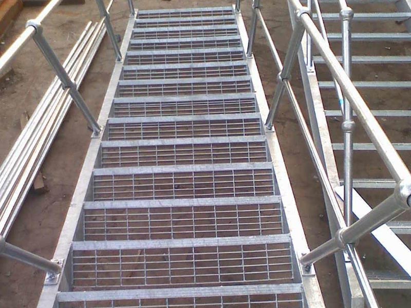踏步板用作工業平臺,梯踏板,扶欄,通道地板,鐵路橋側道,高空塔架平臺,排水溝蓋,井蓋,道路隔柵,在停車場,機關、學校、工廠、企事業、運動場、花園別墅的廣泛應用。